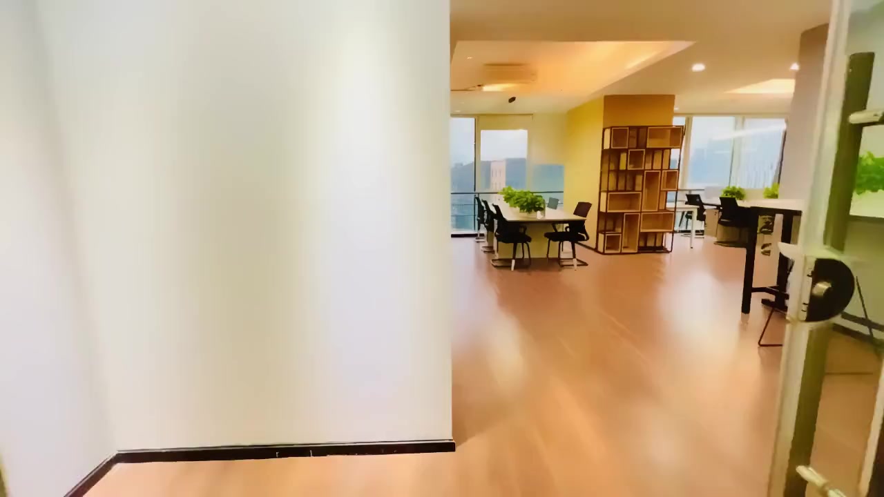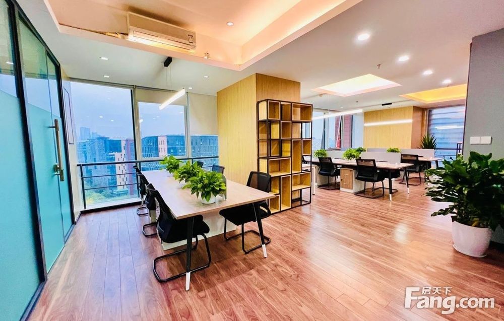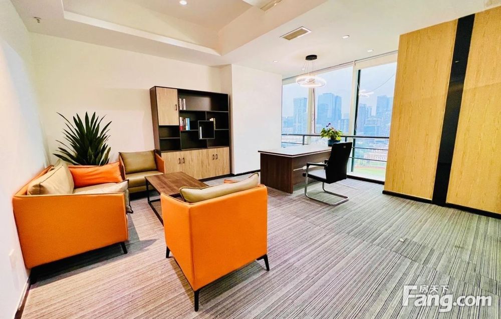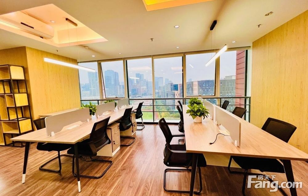 ●格局:进门大气前台形象墙,工区现在放了20个工位(具体可根据需求增减),3隔间,全景落地窗双面采光
